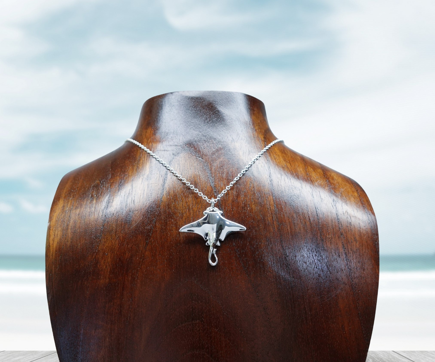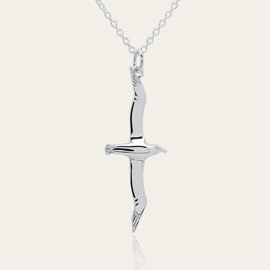 Albatross necklace. Made from highly polished, tarnish resistant silver, hung on a solid silver chain. © Adrian Ashley