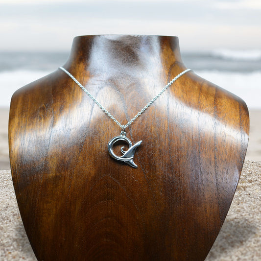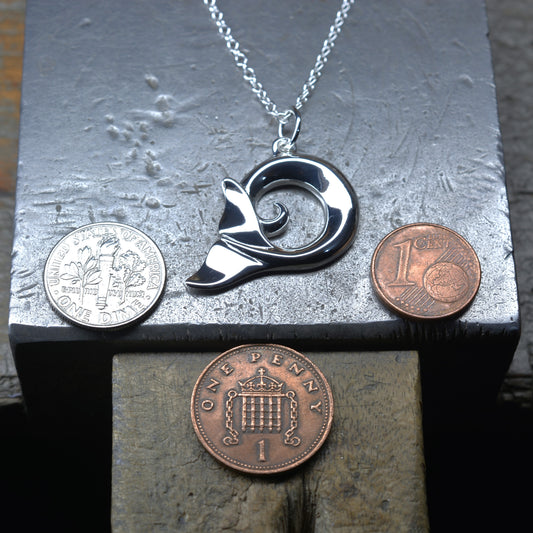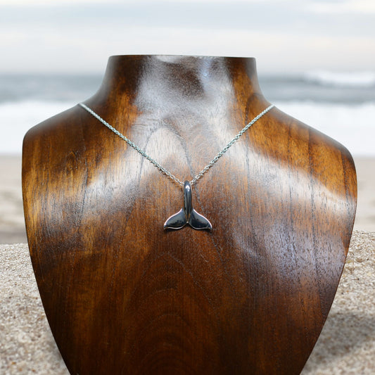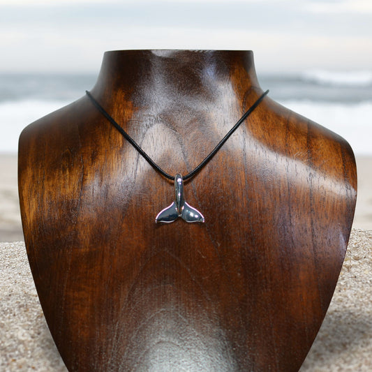 Classic whale tail necklace. Made from highly polished, tarnish resistant silver, strung on a strong cord. © Adrian Ashley