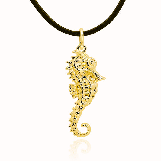 Gold plated silver Seahorse pendant & cord or chain. © Adrian Ashley