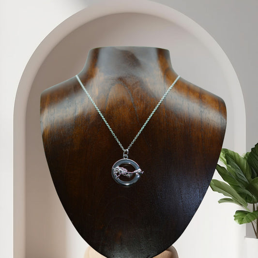 Scuba diver necklace, made from highly polished, tarnish resistant silver, hung on a solid silver chain. © Adrian Ashley