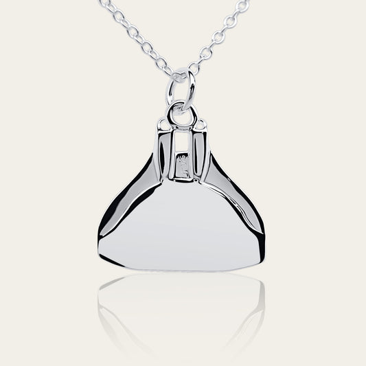 Freediving monofin or monoplame necklace. Made from highly polished, tarnish resistant silver, hung on a silver chain. © Adrian Ashley