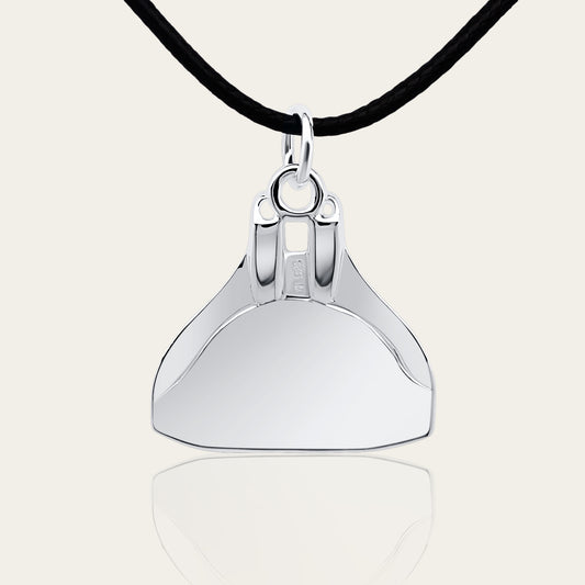Freediving monofin or monoplame necklace. Made from highly polished, tarnish resistant silver, strung on a strong cord. © Adrian Ashley