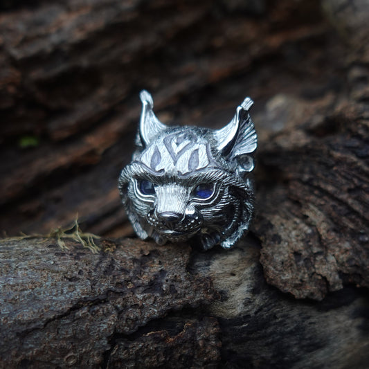 Silver lynx ring. Platinum plated sterling silver Lynx's head ring with natural gemstone eyes. *This piece is finished and ready to be shipped* © Adrian Ashley