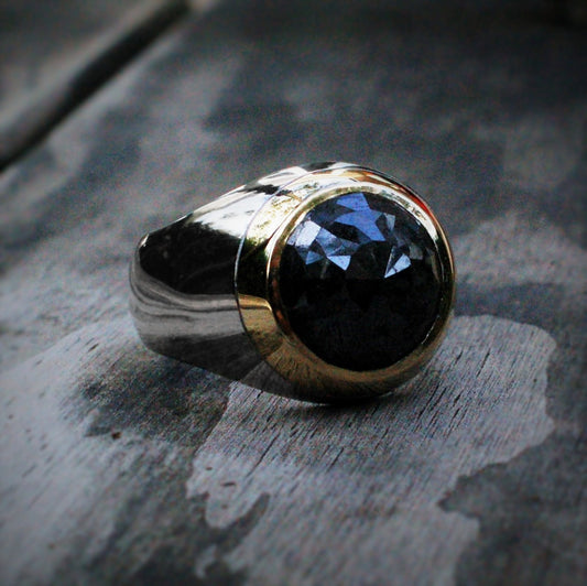 Diamond ring set with a very large 12.35ct rose-cut black diamond. Would fit a UK finger size S to T, US size 9.5 *This piece is ready to be shipped*
