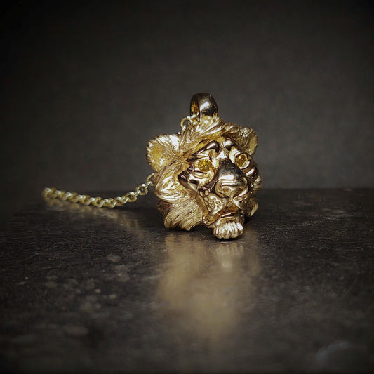 Lion necklace, gold lion's head pendant and solid gold chain with yellow diamond eyes. This piece will be hand made for you in the UK. © Adrian Ashley