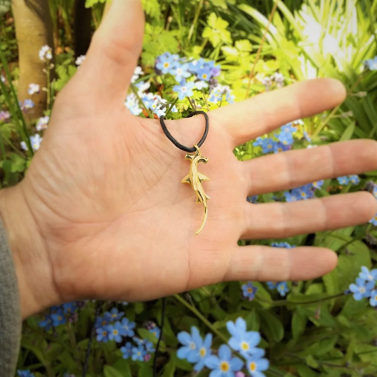 Sea dragon necklace. Solid gold leafy sea dragon pendant. Double sided marine life artwork. © Adrian Ashley