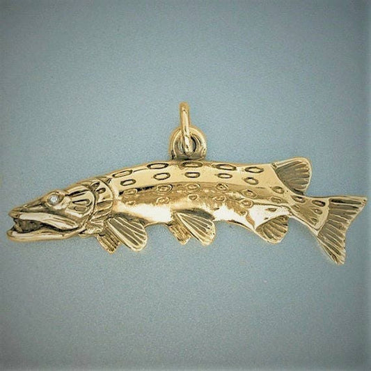 Gold pike necklace, gold and diamond pike fishing pendant, hand made to order. © Adrian Ashley