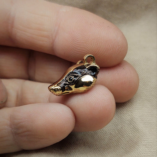 Small silver badger Necklace. Sterling silver pendant with natural sapphire eyes and a solid silver chain. Handmade to order. © Adrian Ashley