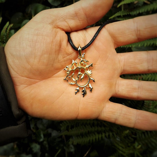 Dragon necklace. Diamond eyed gold ouroboros dragon talisman. Handmade to order. © Adrian Ashley