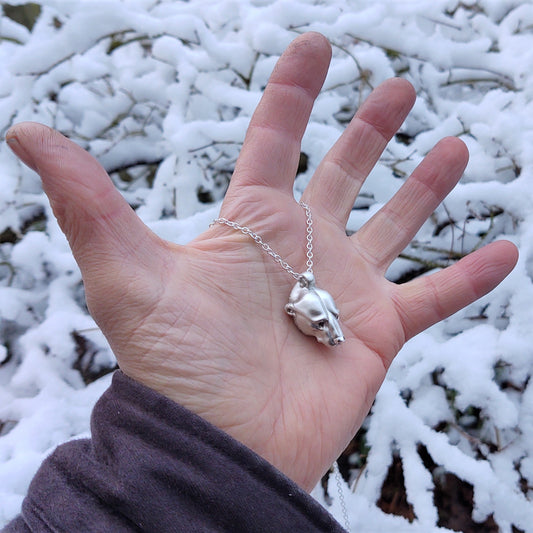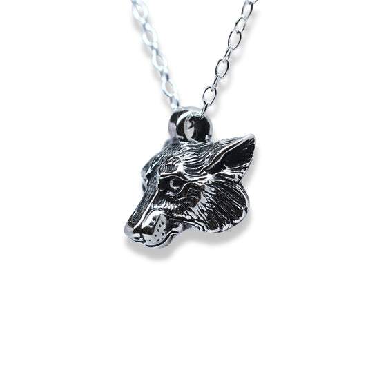 Solid sterling silver wolf pendant and chain. © Adrian Ashley