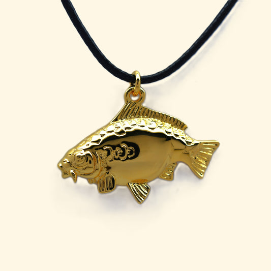 Gold plated silver Mirror Carp pendant with a chain or cord. © Adrian Ashley