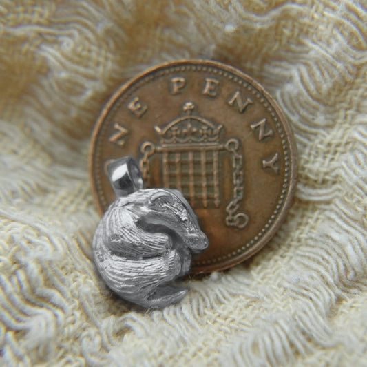 Solid platinum badger pendant and platinum chain. Handmade to order. © Adrian Ashley