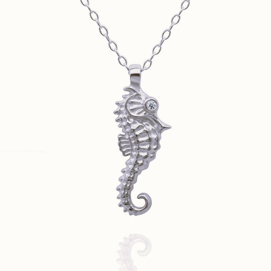 Platinum & diamond Seahorse charm with a solid platinum chain. Hand made to order. © Adrian Ashley