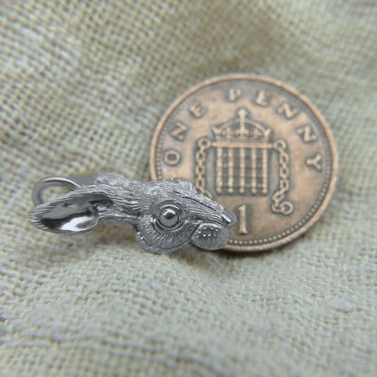 Solid platinum hare pendant and platinum chain. Handmade to order. © Adrian Ashley