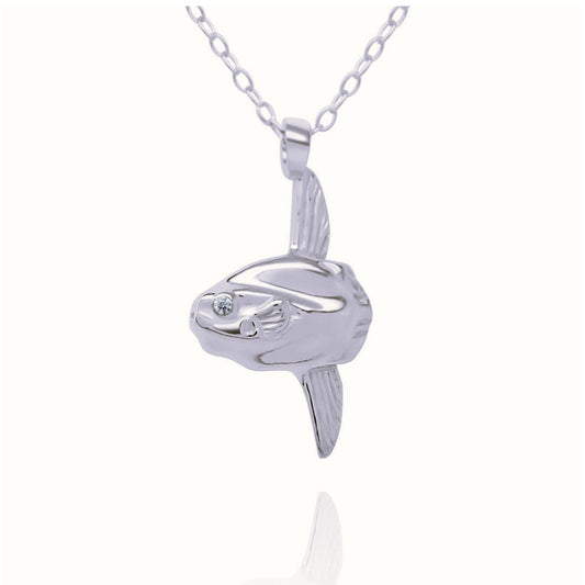 Platinum & diamond Mola Mola charm with a solid platinum chain. Hand made to order. © Adrian Ashley