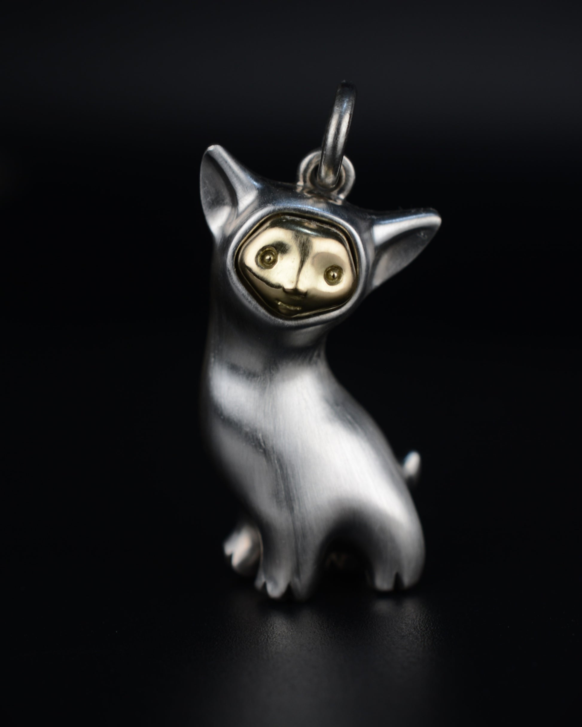 Made from18ct yellow gold and platinum-coated sterling silver with a silver chain.